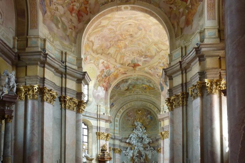 The Benedictine monastery in Rajhrad was founded according to tradition in 1045, making it the oldest monastic-type foundation in Moravia. The present monastic complex dates back to the 18th century, it was built between 1721 and 1746 according to the plans of the architect Jan Blažej Santini-Aichel; however, its project was not completed. After being dissolved in 1950, the largely devastated monastery was taken over by the Benedictine order in 1990. Its entire complex with the Church of St. Peter and Paul is protected as a cultural monument and in 2005 the library became the basis of the new Memorial of Literature in Moravia.