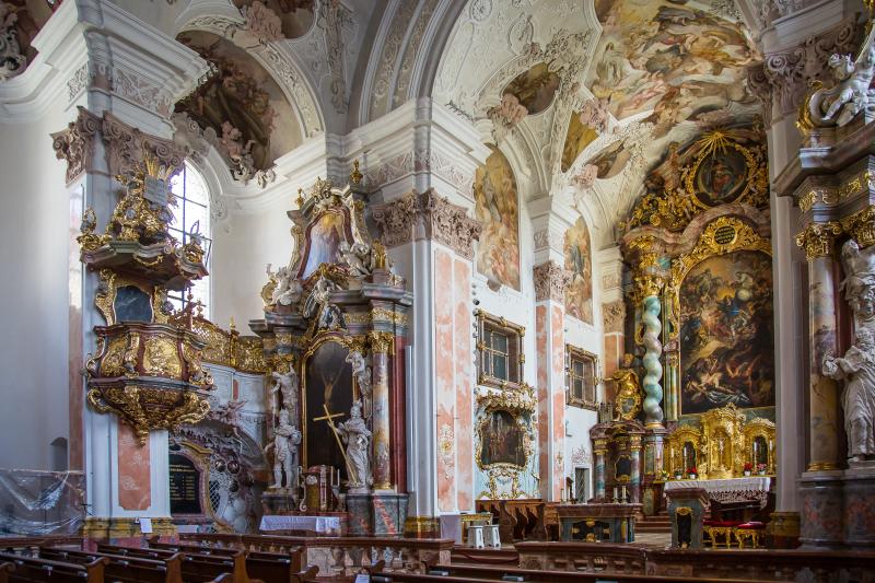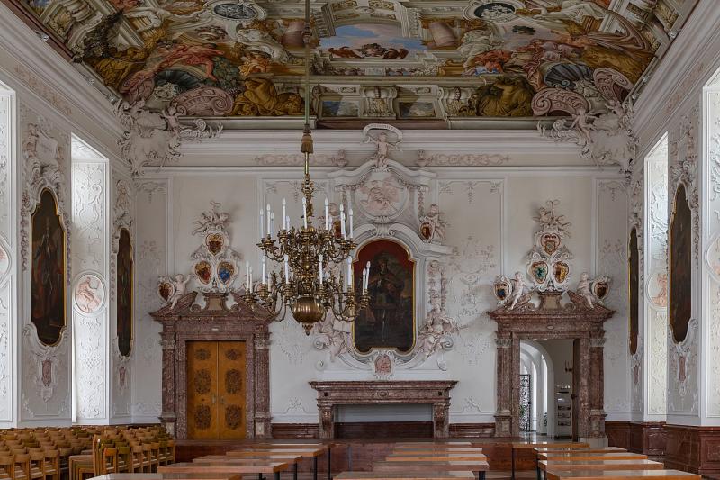 Metten Abbey is one of the oldest in Bavaria, having been founded in 766. For centuries, under the protection of the Bavarian rulers, the abbey trained renowned philosophers and theologians. In 1803, the abbey was secularised and the monks were expelled. Bought by Johann von Pronath, Lord of Offenberg, he persuaded King Ludwig to open a school in the Benedictine tradition. After years of hardship, Metten was re-established as an abbey in 1840. The abbey library in the east wing is a jewel of Baroque architecture and contains more than 200,000 books and manuscripts. Built between 1720 and 1722, its stuccoes are the work of Franz Josef Holzinger and the murals of Innozenz Anton Warathy.
