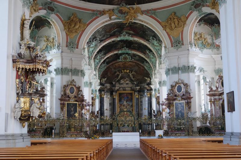 St. Gallen Abbey, founded in 613, is the oldest monastery in Switzerland. Very little remains of the medieval abbey. Between 924 and 933, the invasion of the Magyars threatens the abbey, and books and parchments from the library are sent to Reichenau; most are returned to St. Gallen once the risk of looting has passed. During this looting, St. Wiborada is killed. She is the first woman to be canonised by Pope Clement II in 1047. Most of the buildings, including the abbey church, were built between 1755 and 1768 in the Baroque style. Its rococo library is one of the most important monastic libraries in the world, housing one of the most comprehensive collections of early medieval manuscripts in German-speaking Europe.