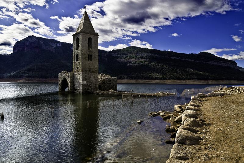 The Church of Sant Romà is a Lombard Romanesque building that was consecrated in 1062. It was seriously affected by an earthquake in the 15th century and was later renovated and enlarged. Since the construction of the Sau reservoir in the 1960s, it has been submerged underwater with the rest of the village, but in times of drought, it can be accessed.