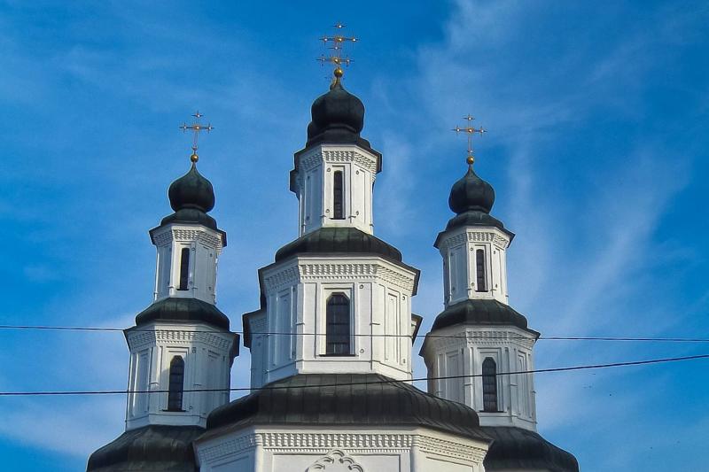 The Cathedral of the Holy Dormition, built in the second half of the 18th century, is an emblem of Cossack Baroque. It was the first stone cathedral in Poltava. The cathedral building is two-storey in the style of a Byzantine basilica, with three domes. About 10 years later, around 1780, the cathedral was rebuilt. Two more domes were added above the altar.