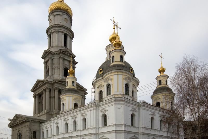 The Cathedral of the Dormition of the Mother of God was the most important Ukrainian Orthodox church in Kharkiv until the construction of the Annunciation Cathedral in 1901. The first mention of the cathedral in written sources dates back to 1658. However, the present cathedral was built in the years 1771-1777 in the style of Russian Baroque. To commemorate the victory over Napoleon, a 90-metre high bell tower was built in the years 1821-1844. In 1929, the atheist authorities closed the cathedral, demolished its domes and removed the bell from the tower. The decorative elements of the façade were also destroyed. In the 1950s, however, several renovations took place. A tornado damaged the tower in 1975.