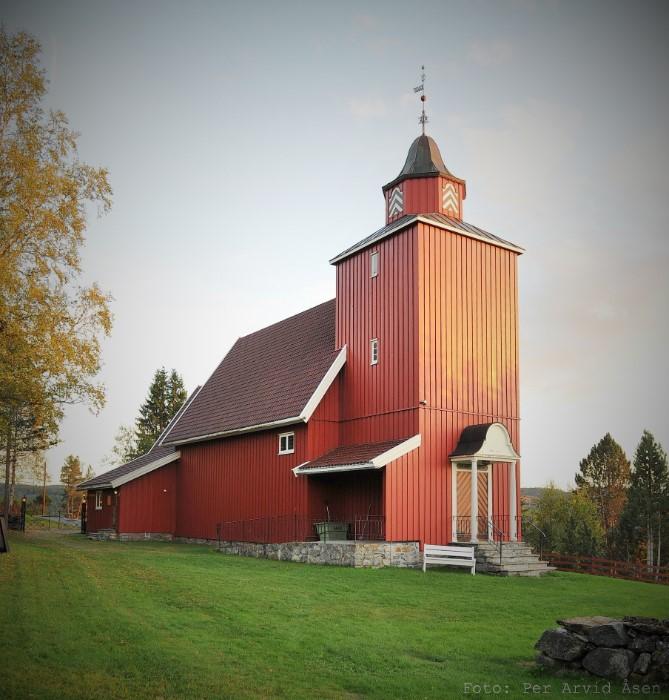 Østsinni Church is a long church designed by J. W. Nordan (1824-1892). Dating from 1877, most of its interior furnishings such as the altarpiece, baptismal font, pulpit and paintings are from the 18th century.