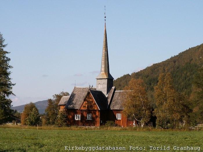 Kvikne church is a wooden cruciform church consecrated in 1654 and replaced an earlier Stave church on the site. In the 18th century, a vestry was built behind the choir to the east and a bell tower to the west.