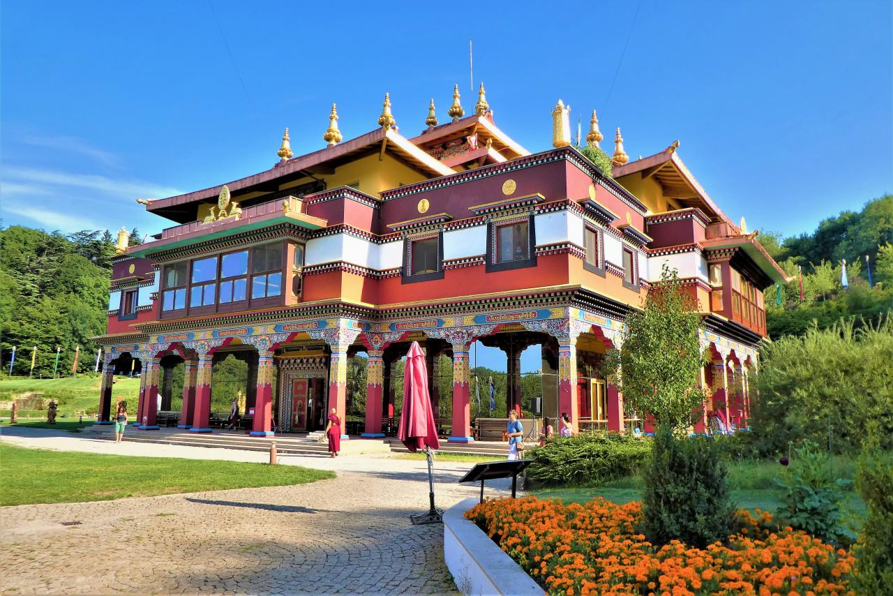 Lerab Ling is a Tibetan Buddhist centre founded in 1991 by the exiled lama Sogyal Rinpoche (1947-2019). The centre, affiliated to the Nyingma school, includes a three-storey temple (Palri Péma Ösel Dargyé Ling) designed and built in the style of an authentic traditional Tibetan temple, and the decorations were made by craftsmen from India, Nepal and Bhutan.