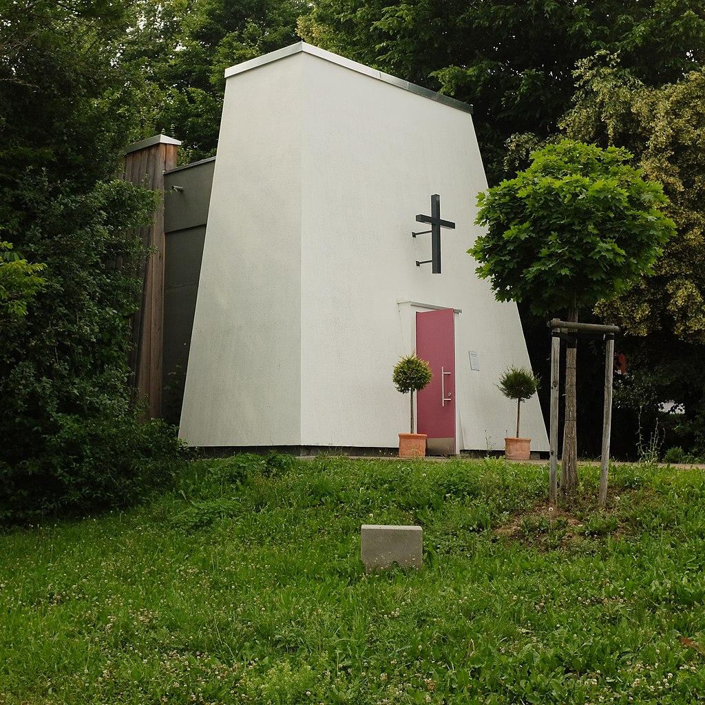 The motorway chapel Gramschatzer Wald is an ecumenical ‘road church’ located east of the Gramschatzer Wald junction of the Federal Motorway 7. The chapel was planned and built by the Regensburg architect Haymo Ruscheinsky. The prayer room was consecrated in 2015. The furniture is completely made of wood. The Regensburg painter Ralf Peinl designed the interior walls of exposed concrete with signs of death and resurrection.