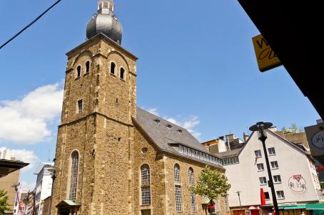 The Nevigeser Wallfahrtsdom is a pilgrimage church built in 1963-1972. The architectural style of the current building, designed by Gottfried Böhm, is attributed to brutalism. The shape of the building is meant to resemble that of a large tent, and the frequently recurring symbol of the interior design is the rose, symbol of the Virgin Mary.