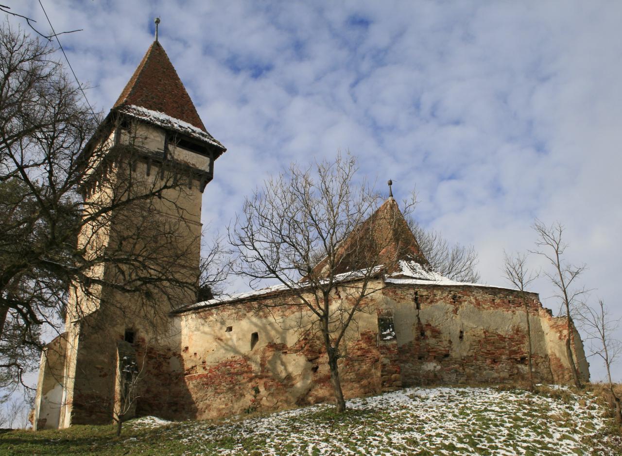 The small towerless one-nave hall church in Pelişor was built in the 15th century and has remained almost unchanged until today. Only the nave was provided with a new stuccoed flat ceiling in the 19th century. In 1500 a polygonal curtain wall was built and endowed with four defensive towers, of which only the impressive gate tower with battlement walk survived the centuries. The assembly was strengthened on its western hillside with another wall with outer bailey built in 1600. The construction is still more than 10m high and preserves several defensive systems such as loopholes and embrasures.