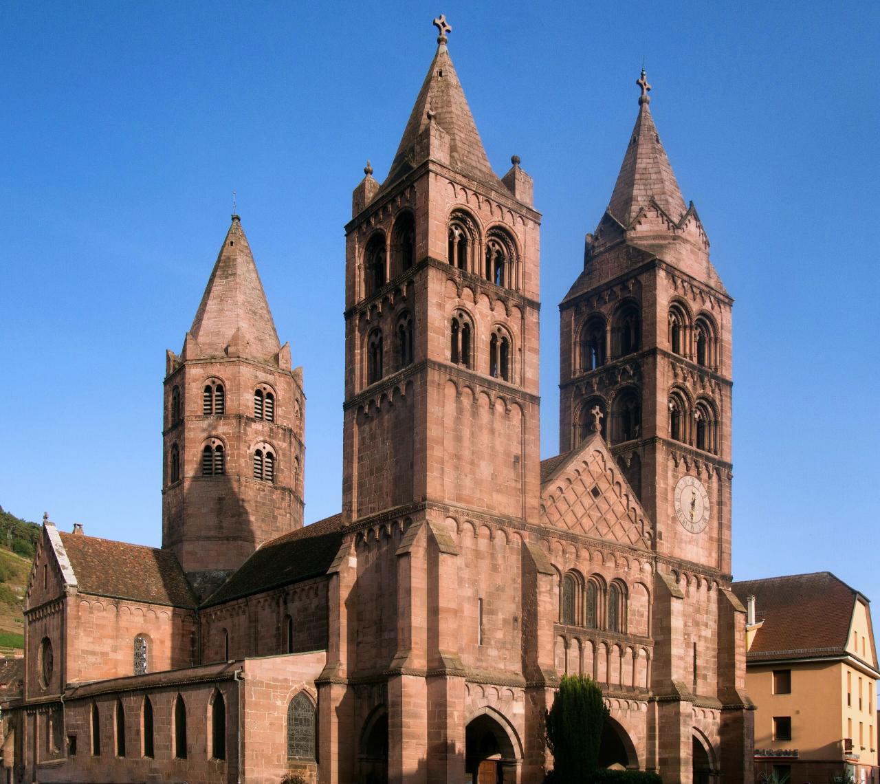 The facade of the two towers, the open porch and the octagonal bell tower were completed as soon as the church was built. The harmonious architecture of the building distinguishes it from other Romanesque churches in Alsace, the construction of which has often remained unfinished. Several additions and modifications have taken place over the centuries, such as the five-sided apse, or the upper parts of the choir.