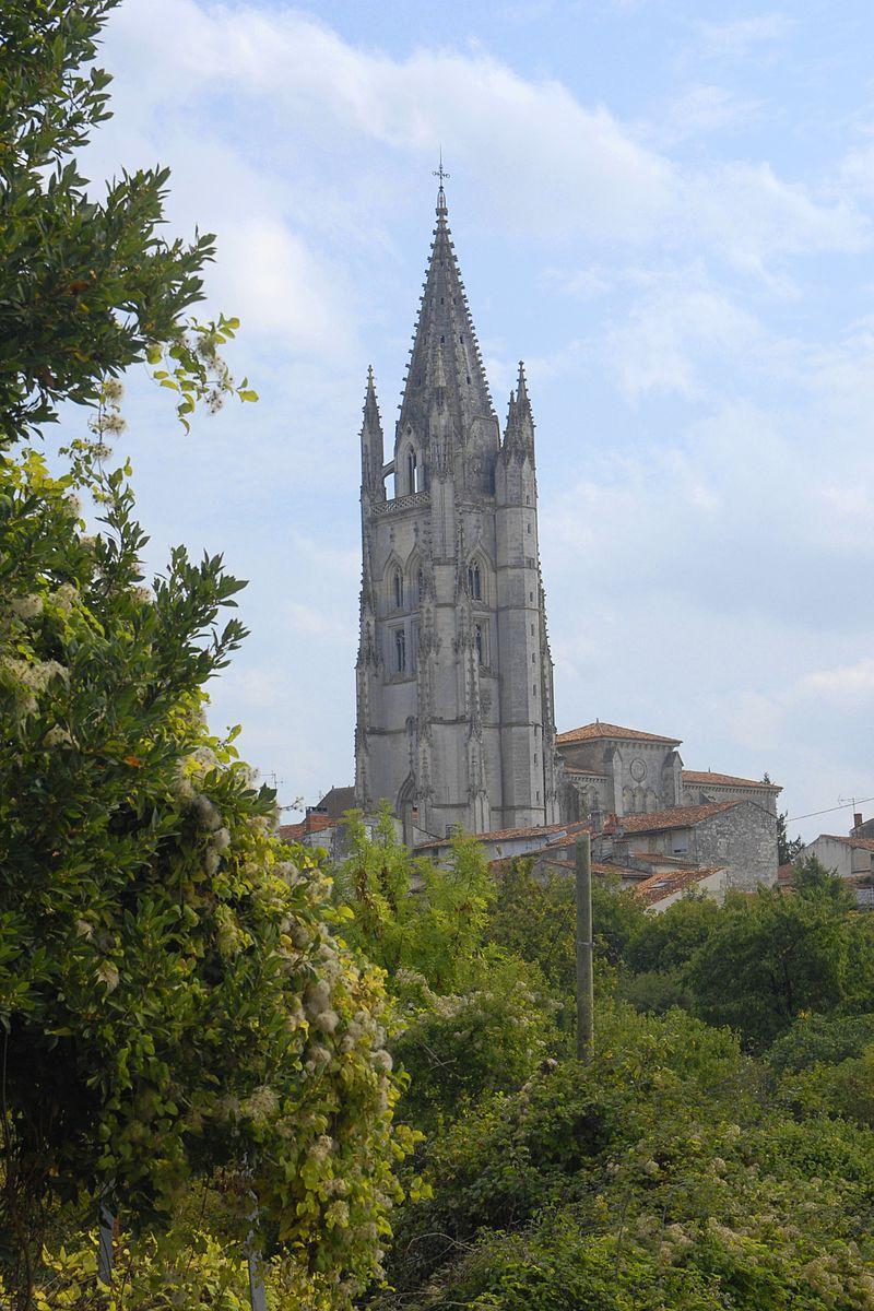 To honour the relics of Saint Eutropius of Saintes (3rd or 4th century), Benedictine monks founded a monastery in the 9th century and built a two-storey church. The church acquired its Gothic bell tower later in the 15th century (1478-1496). The Benedictine monastery being abolished in 1789, the building became a parish church.