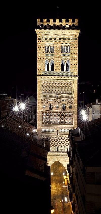 The tower of the church of Salvador de Teruel is a Mudéjar Aragonese style building built in the 14th century. At that time, the Muslim population still lived in the city thanks to the privileges granted by Alfonso II. The tower imitates the structure of the Almohad minaret with two concentric square towers. Once the restoration work was completed, between 1991 and 1993, it became the first Mudejar tower to be visited in the city of Teruel.