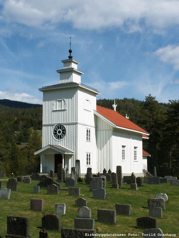 Lårdal Church is a long church dating from 1831, the third on this site. Lårdal has had a church since the Middle Ages. A stave church was replaced by a wooden church in 1684, which was then replaced by the present church. The sacristy dates from 1887. The church was painted and decorated by Samuel Tveit in 1895 and renovated by Olav Fossli in 1971.