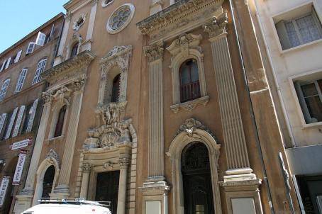 The first church was built in the middle of the 17th century (begun in 1633, consecrated in 1648), replaced by a new church built between 1717 and 1732. Three side chapels were destroyed before the Revolution. The façade and the interior were rebuilt during the Second Empire between 1850 and 1870 (paintings of the vaults by Antoine Sublet).