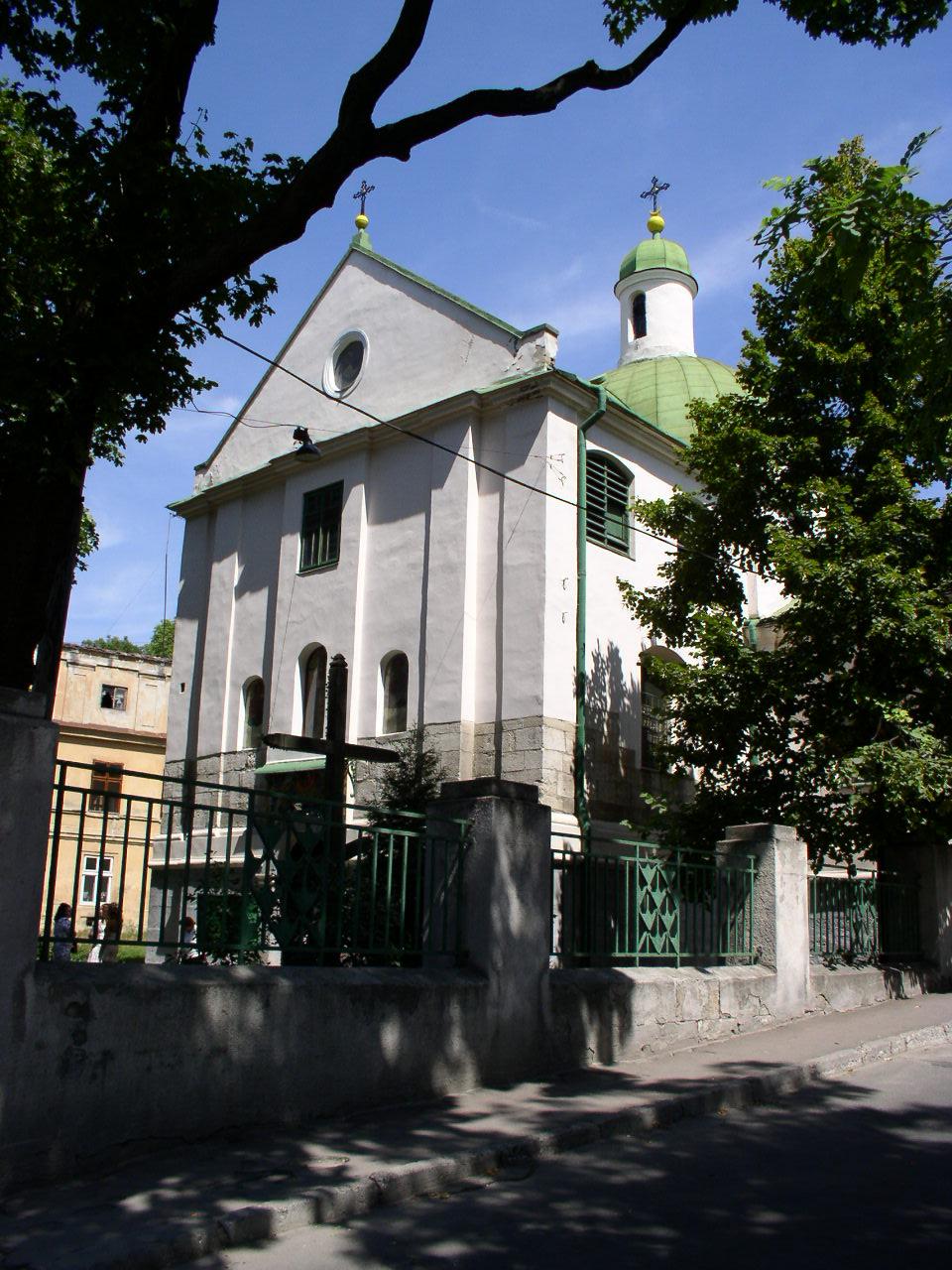 The church was originally built between 1703 and 1731. Back then, it was used as a Roman Catholic church of the Holy Trinity of the Trinitarian Order. The style of the building was French classicism with a Baroque interior. The monastery was abolished by the Holy Roman Emperor Joseph II in 1783, after which the church was used as a library of the Lviv University. In 1848, the building was destroyed by Austrian artillery during the Spring of Nations. It was the Greek Catholic Church that rebuilt the church. Most of the original design was kept, but the apse was added to the short presbytery, and domes that now dominate the facade were built on the church towers. The interior needed to undergo much deeper changes to suit the needs of Eastern Rite liturgy.
