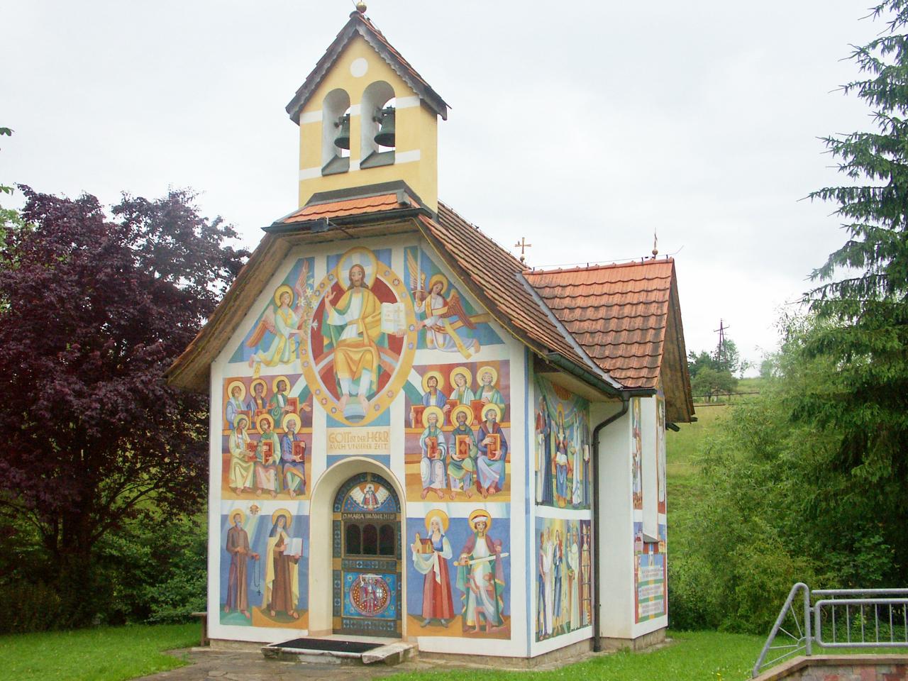 Tregist Chapel dates back to the 1980s. On the site of the present chapel, there was originally a chapel from 1884, which was damaged by a flood around 1955 and then demolished. The exterior and interior of the new chapel were designed by the local sculptor and painter Franz Weiss between 1986 and 1992.