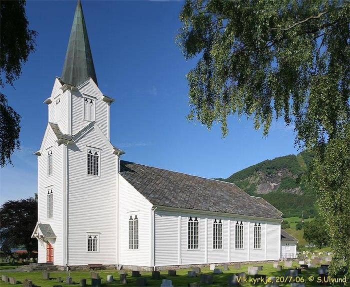 Vik Church is a long wooden church built in 1877, designed by the architect Haakon Thorsen. It replaced the Hove church and the Hopperstad Stave church as a parish church.